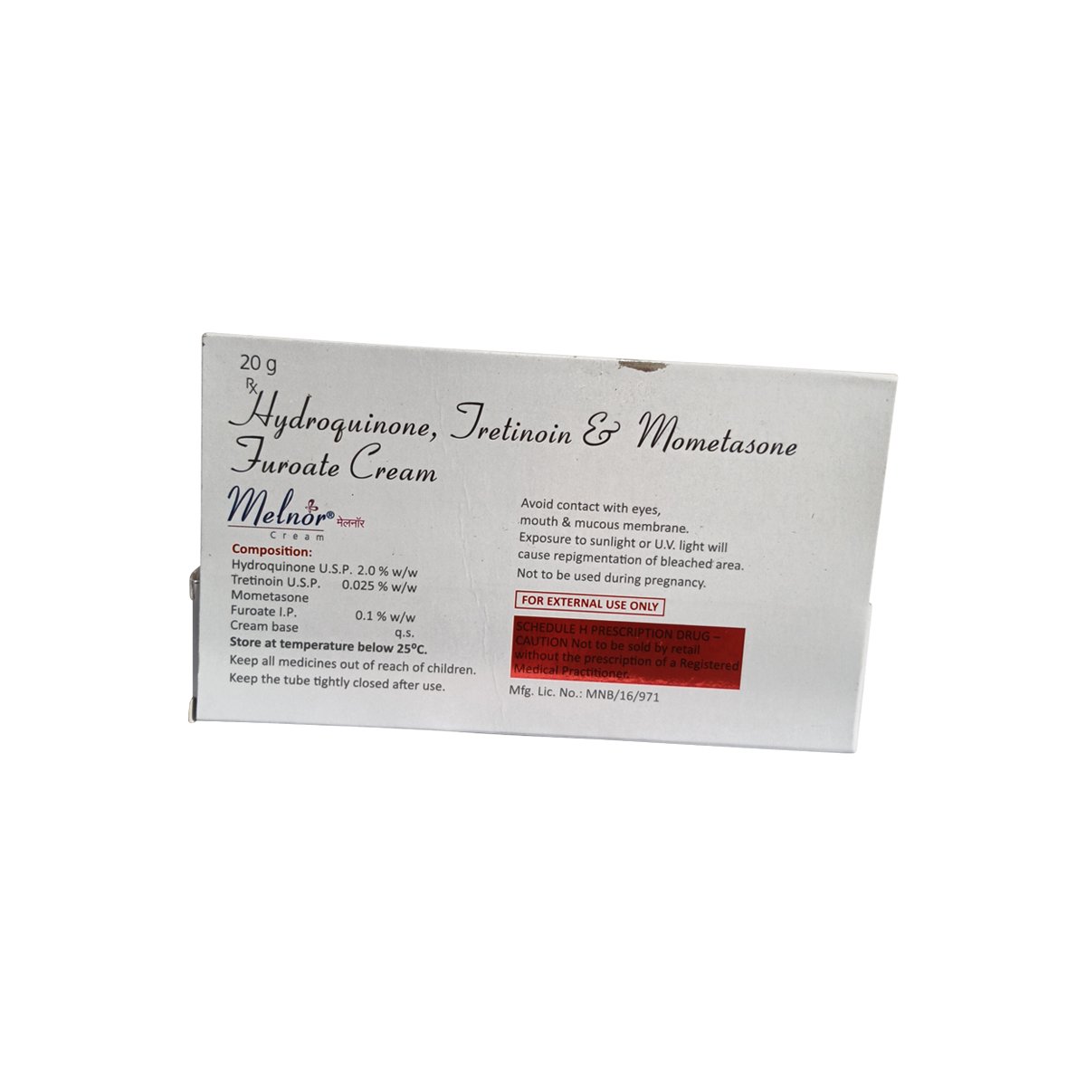 এই ক্রিমে রয়েছে তিনটি মূল উপাদানের শক্তিশালী মিশ্রণ: Hydroquinone, Tretinoin এবং Mometasone Furoate। এটি ত্বকের অতিরিক্ত মেলানিন উৎপাদন নিয়ন্ত্রণ করে এবং মৃত কোষ সরিয়ে নতুন ও উজ্জ্বল ত্বক গঠনে সাহায্য করে।